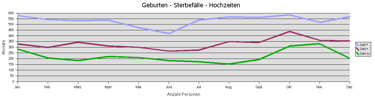 Monatsauswertung Geburten - Sterbefälle - Hochzeiten