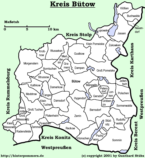 Die Stadt Bütow (heute poln.: Bytow) liegt in Hinterpommern und gehörte zur früheren preußischen Provinz Pommern. Sie war Kreisstadt des Kreises Bütow.